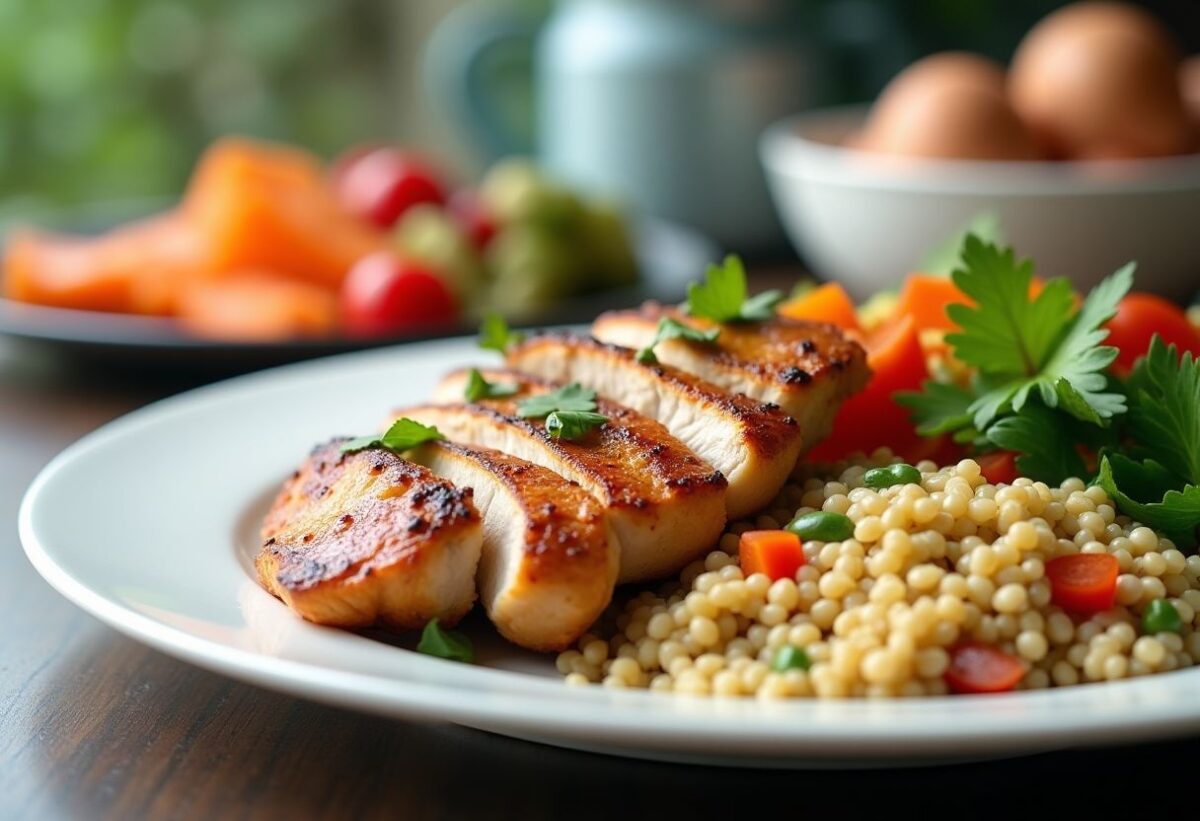 Planifier vos repas est crucial pour garantir un apport suffisant en protéines tout au long de la journée. Incluez des sources de protéines à chaque repas et collation. Voici un exemple de menu :