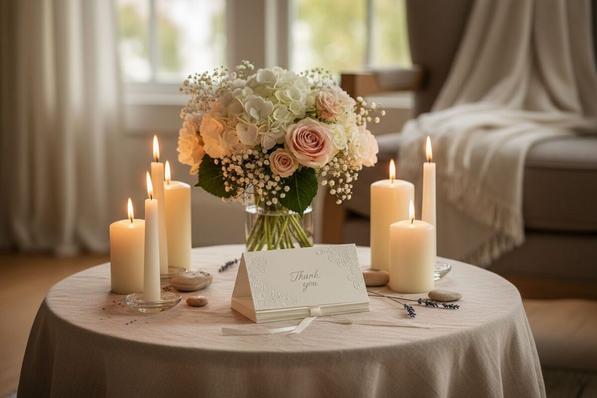 Les marques d’affection comme les fleurs, les messages ou les visites témoignent d’une grande reconnaissance. Remerciez chaleureusement ceux qui ont apporté ces gestes de réconfort, car ils ont contribué à alléger votre peine.