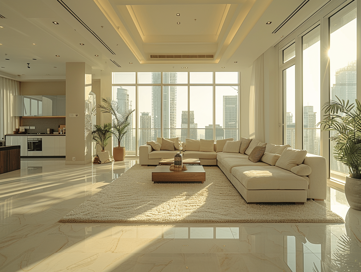 L’architecture d’un appartement T5 de luxe se distingue par sa capacité à allier espace, luminosité et fonctionnalité. Les grands volumes sont mis en valeur par des baies vitrées offrant une vue dégagée et panoramique, souvent sur des paysages urbains ou naturels.